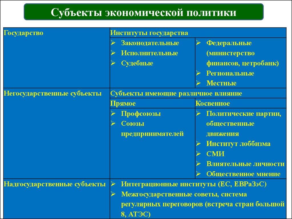 3. Субъекты национальной экономической