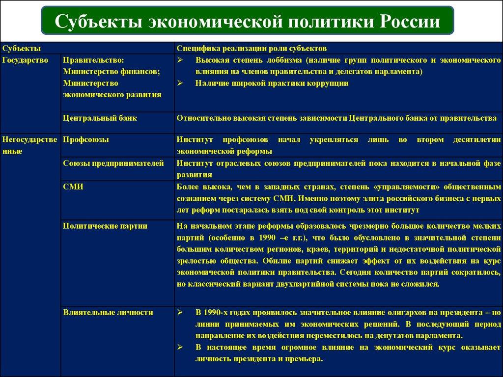 экономическую политику государства –