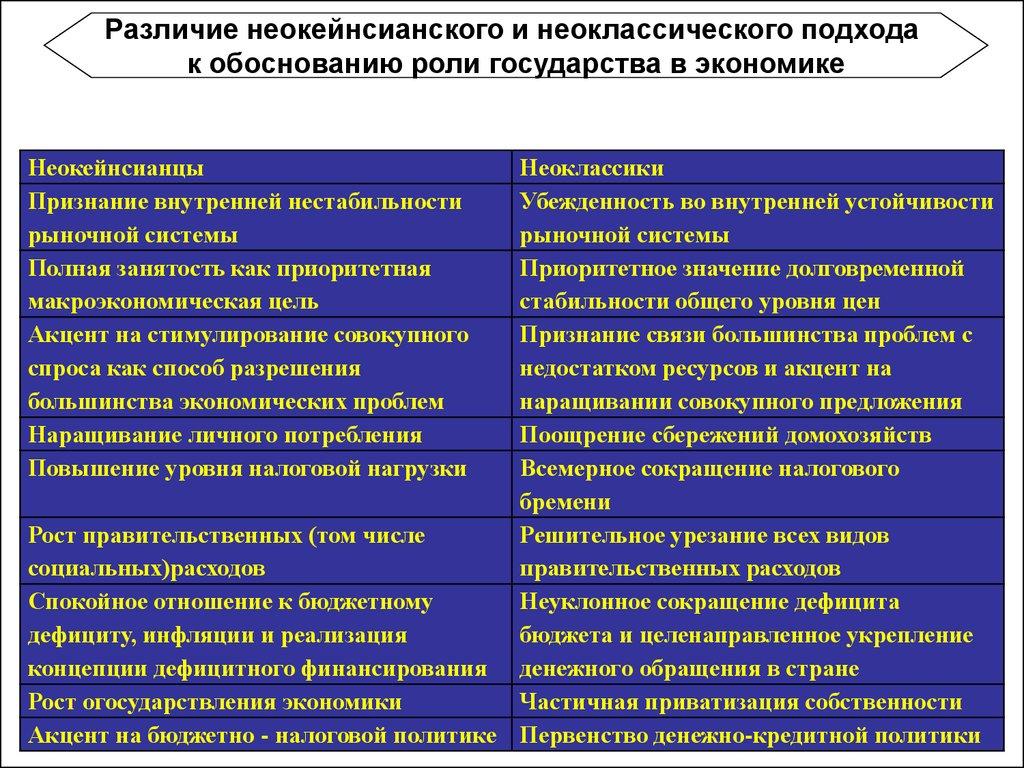 Различие неокейнсианского и неоклассического подходак обоснованию роли государства в экономике