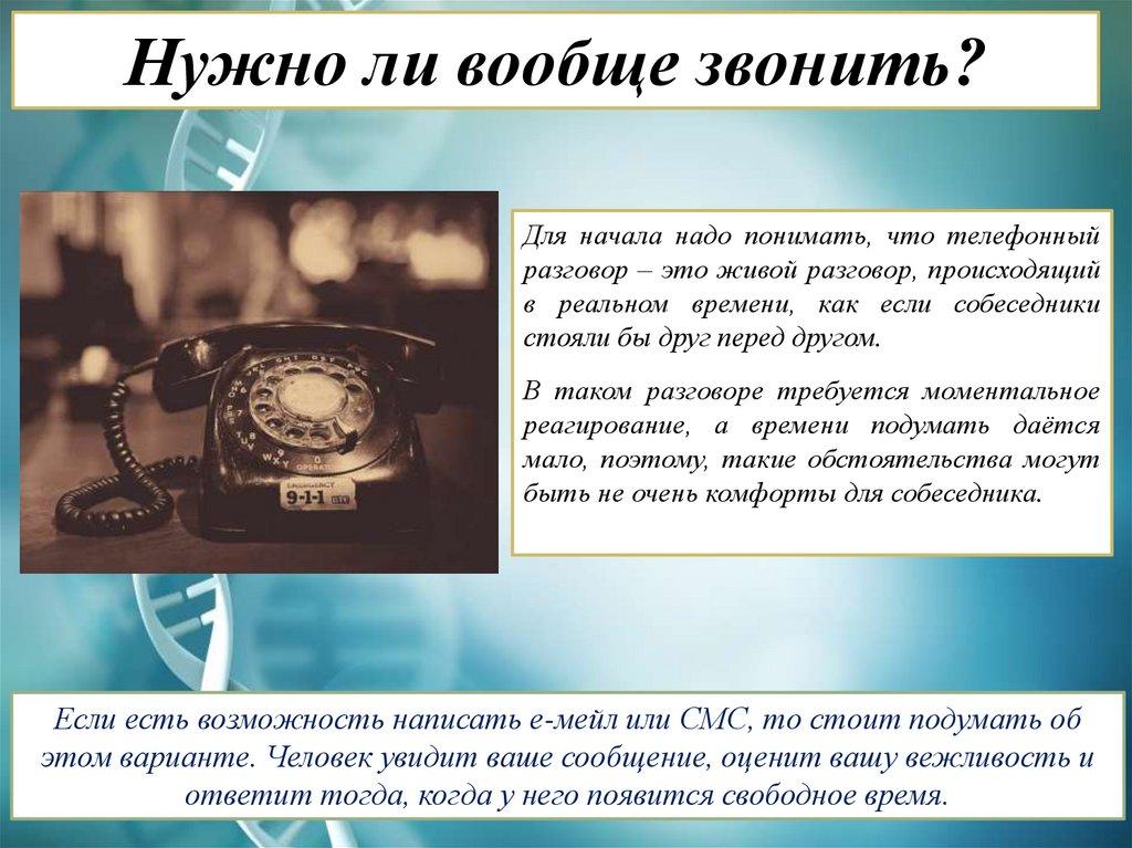 Нужно ли вообще звонить?Для начала надо понимать, что телефонный
