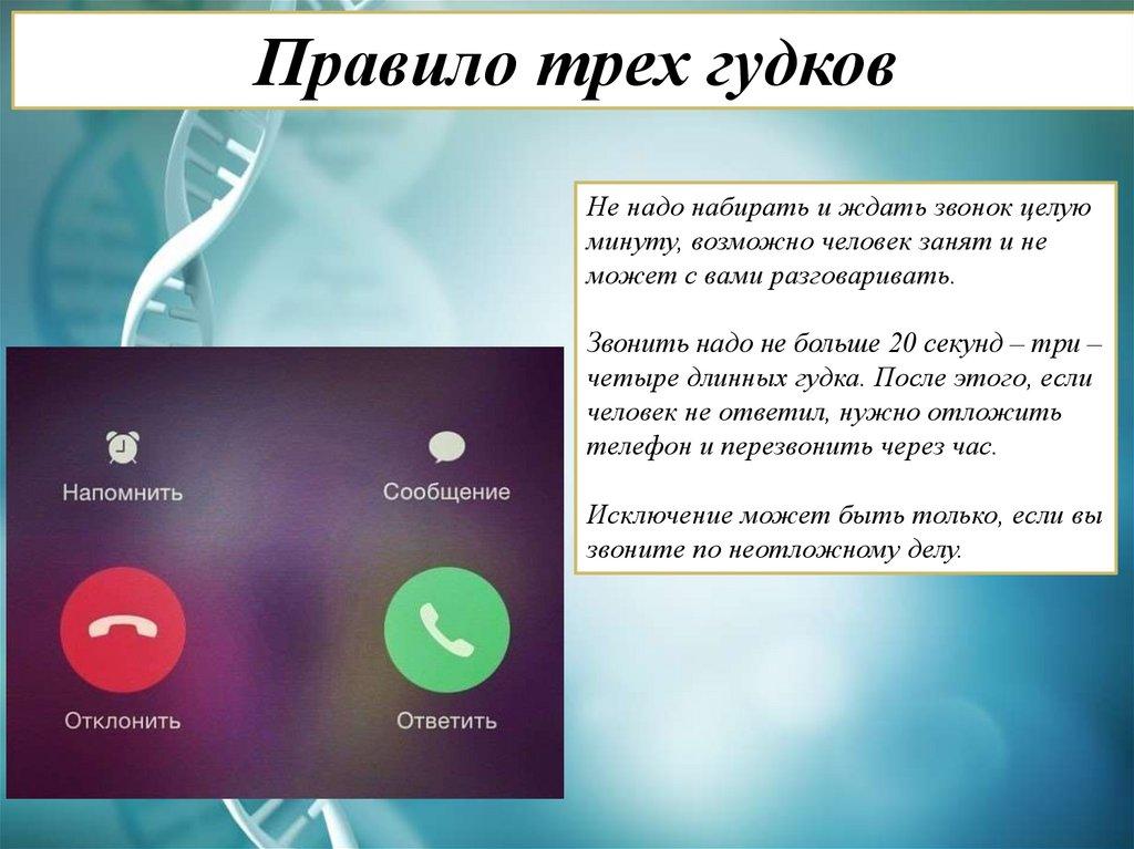 Правило трех гудковНе надо набирать и ждать звонок целую