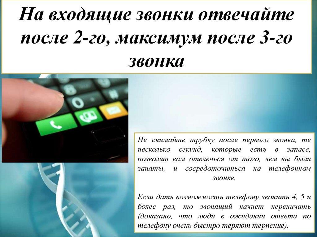 На входящие звонки отвечайтепосле 2-го, максимум после 3-го