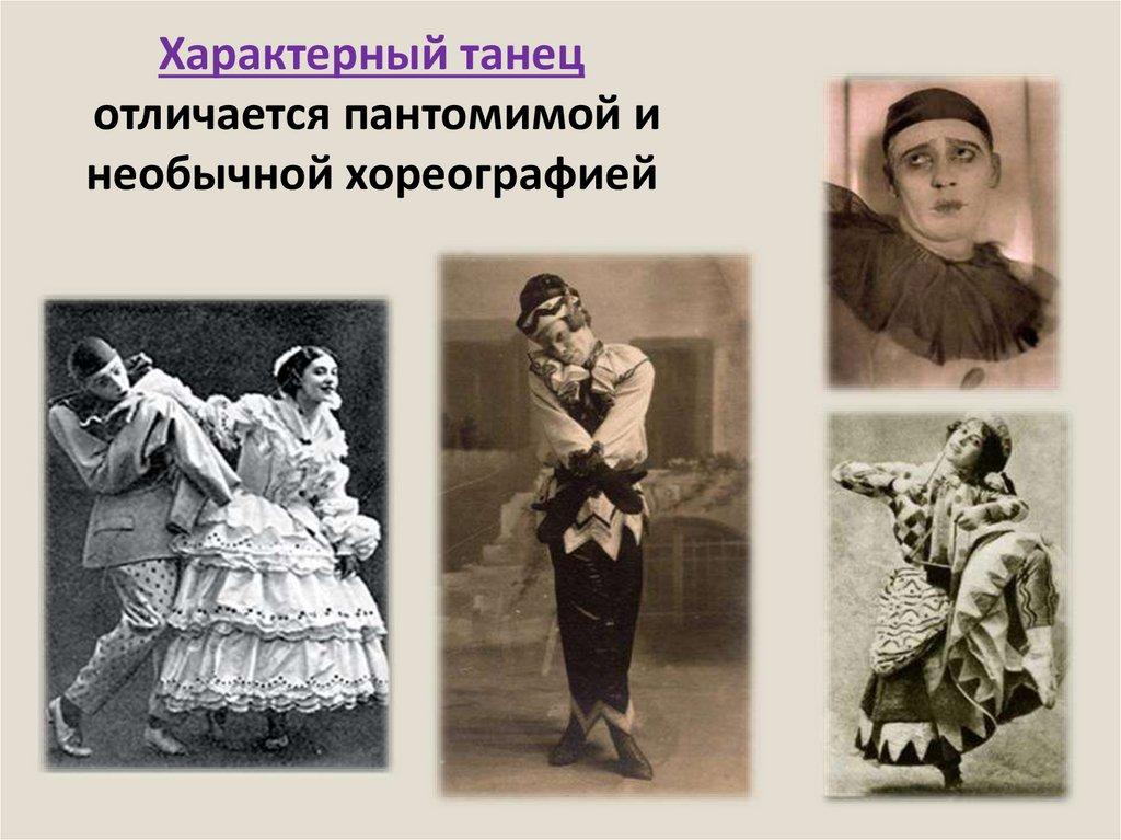 Характерный танецотличается пантомимой и