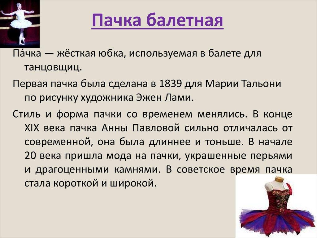 Пачка балетнаяПа́чка — жёсткая юбка, используемая в балете для