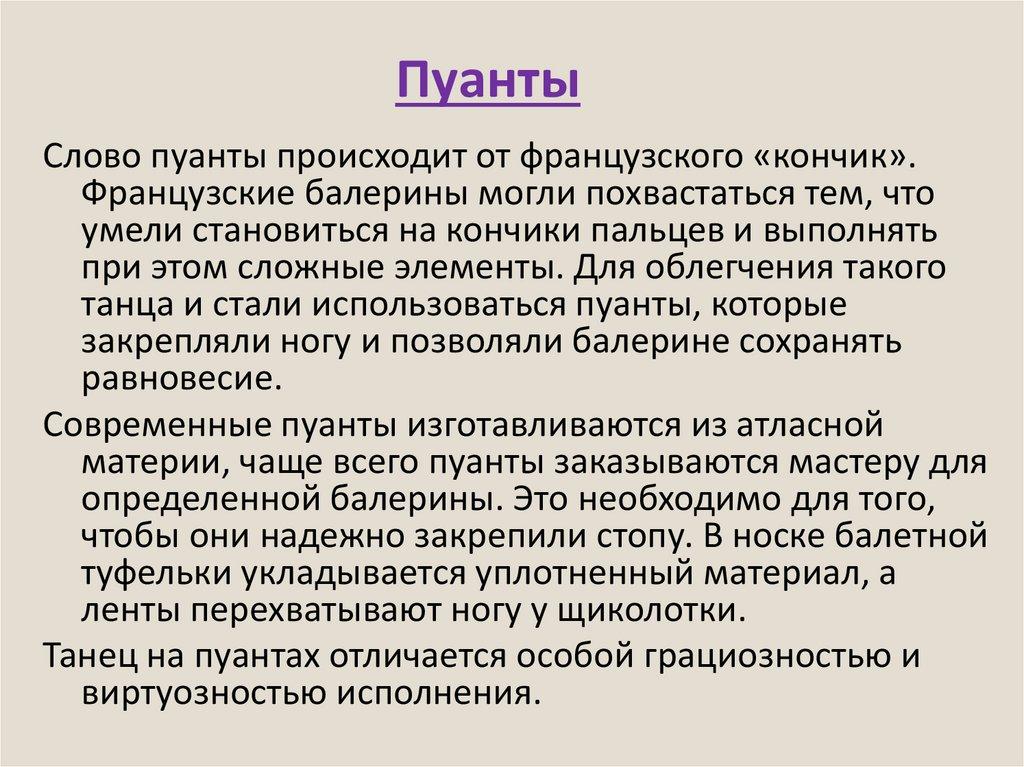 ПуантыСлово пуанты происходит от французского «кончик».