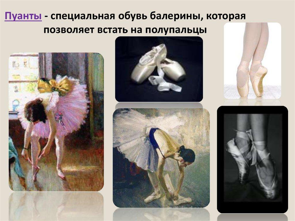 Пуанты - специальная обувь балерины, котораяпозволяет встать на полупальцы