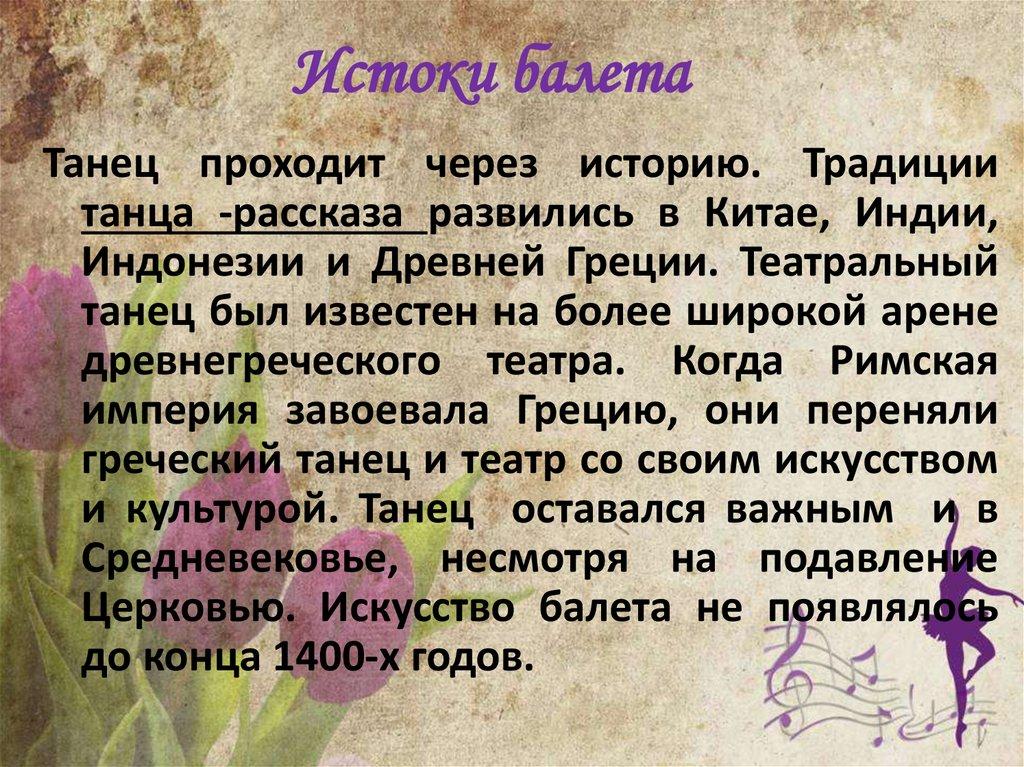 Истоки балетаТанец проходит через историю. Традиции