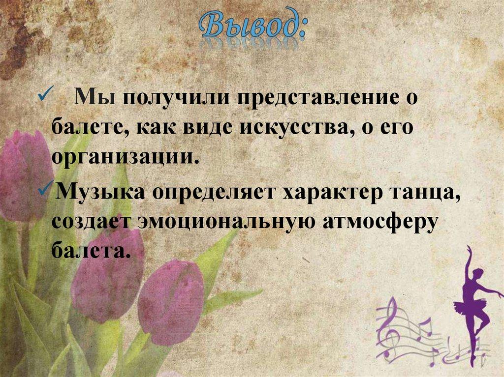 Мы получили представление обалете, как виде искусства, о его
