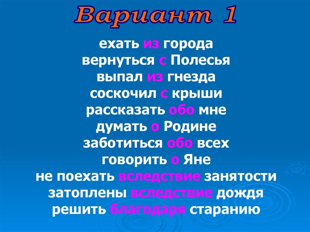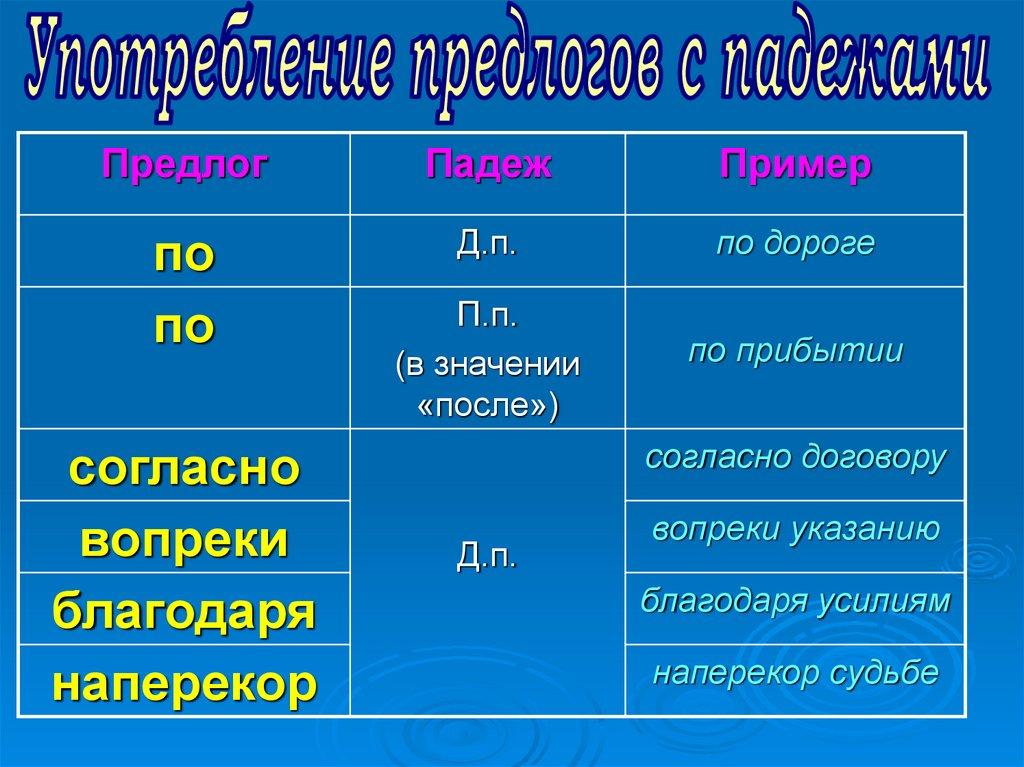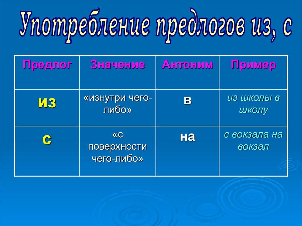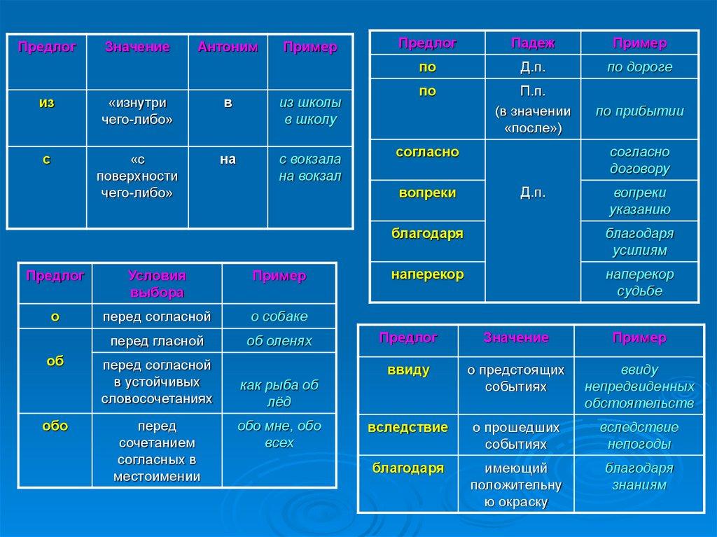 Употребление предлогов