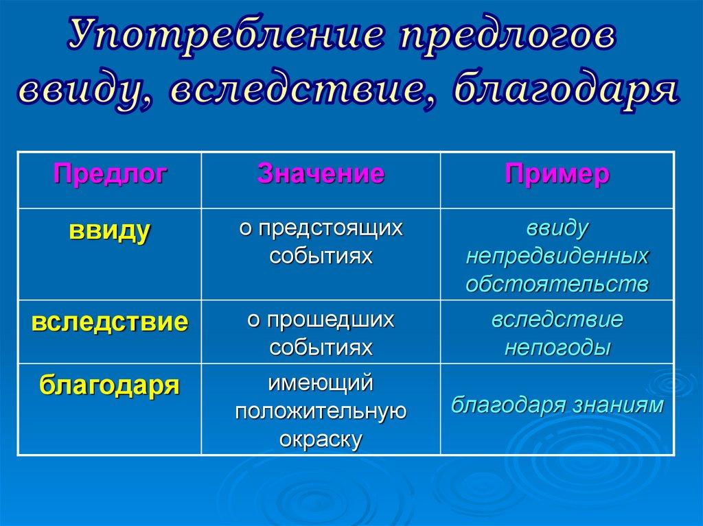 вследствие, благодаря