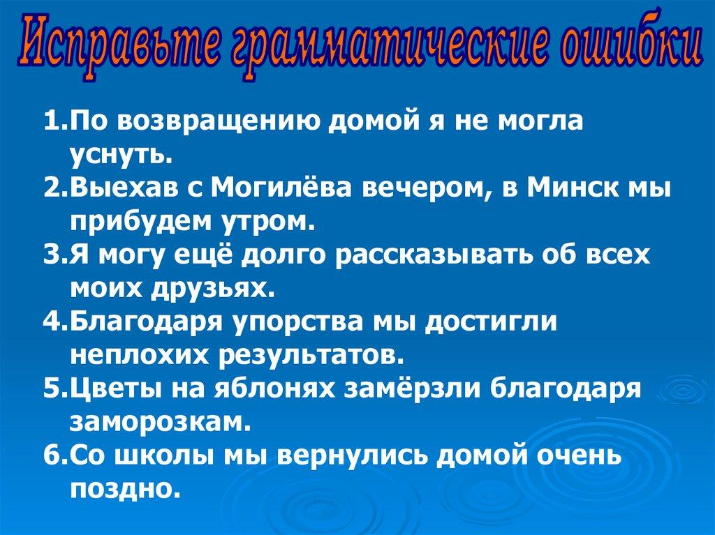 1.По возвращению домой я не моглауснуть.