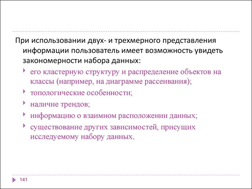 При использовании двух- и трехмерного представленияинформации пользователь имеет возможность увидеть