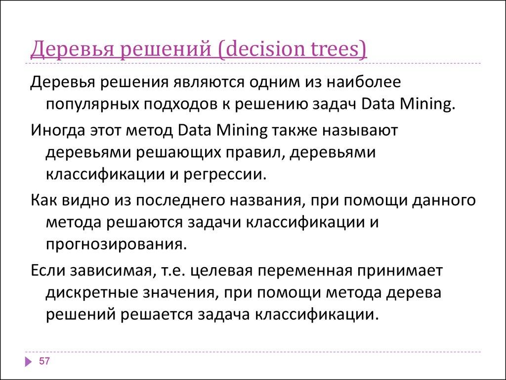 индукция деревьев решений;
