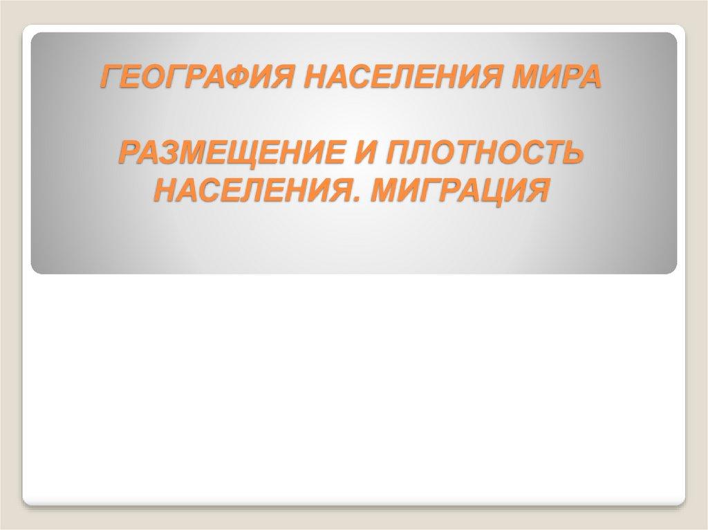 ГЕОГРАФИЯ НАСЕЛЕНИЯ МИРАРАЗМЕЩЕНИЕ И ПЛОТНОСТЬ