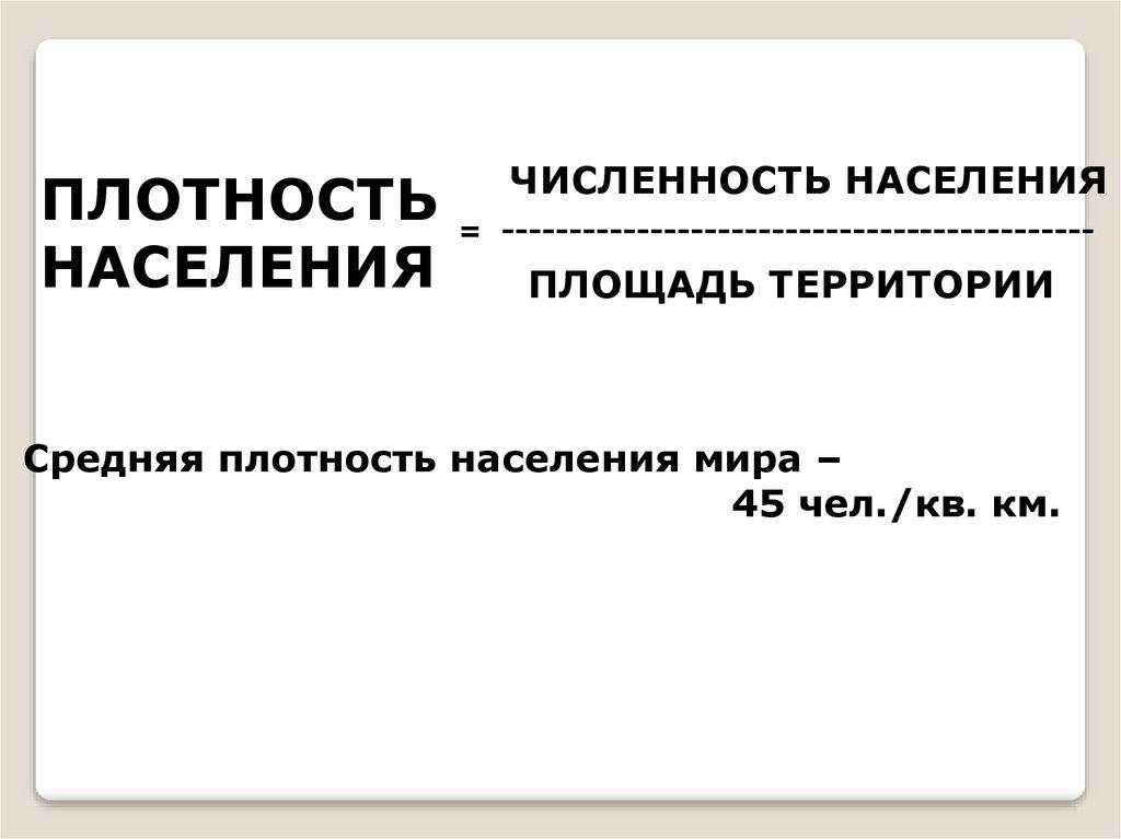 Средняя плотность населения мира –