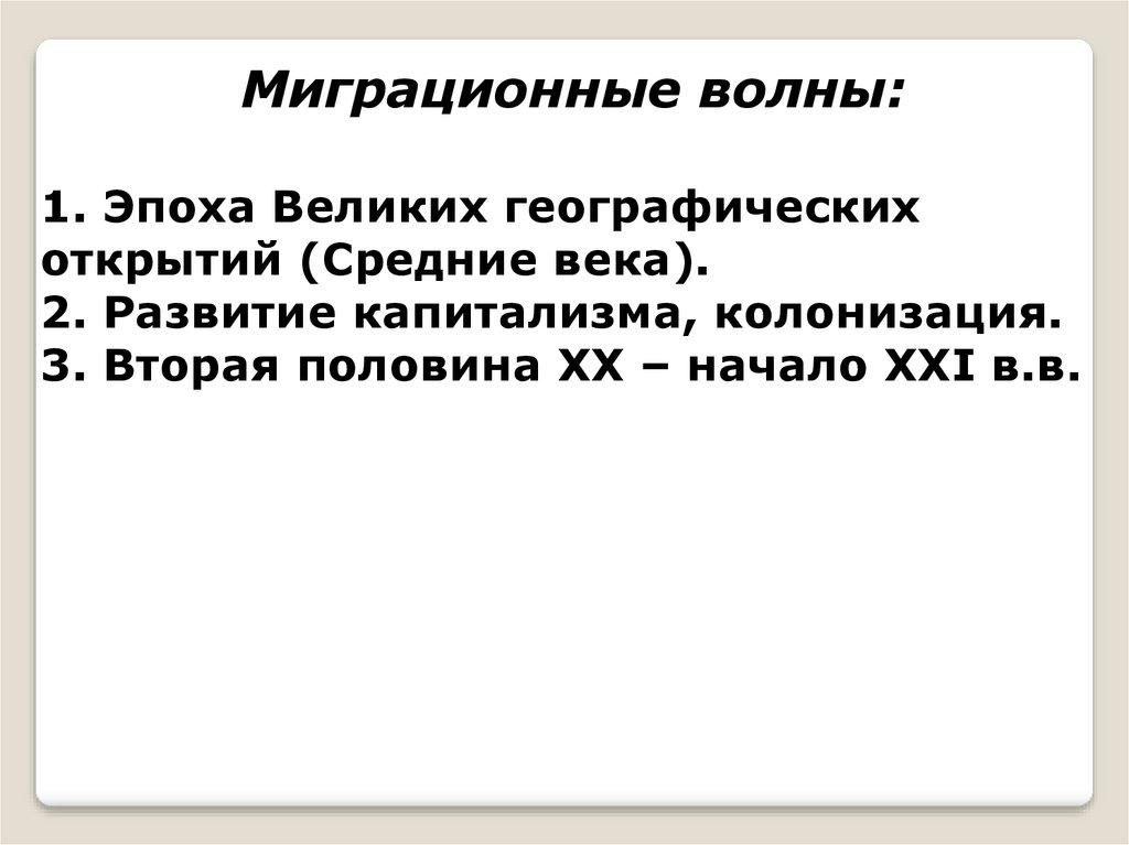 Миграционные волны:1. Эпоха Великих географических