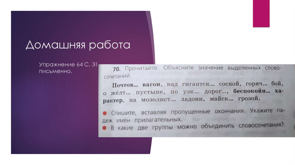 Домашняя работаУпражнение 64 С. 31