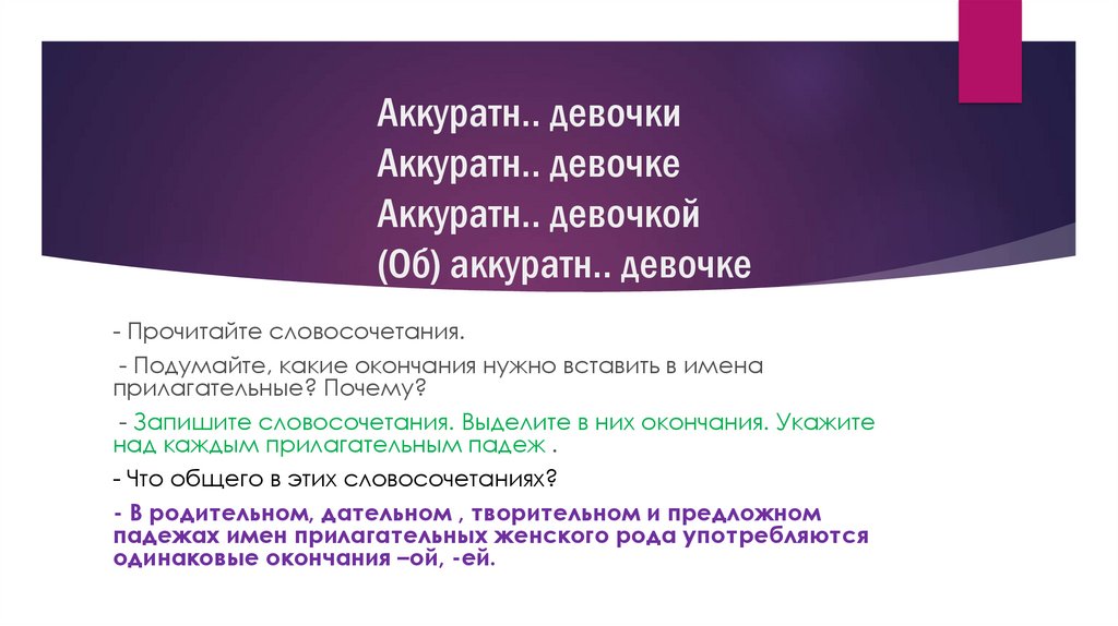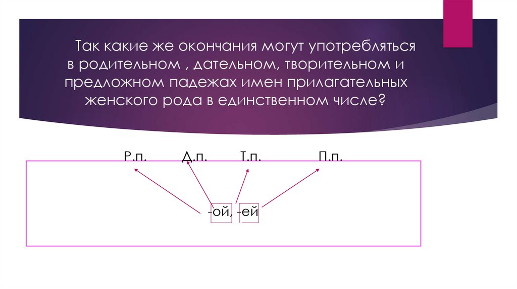 падежах имен прилагательных женского рода употребляются