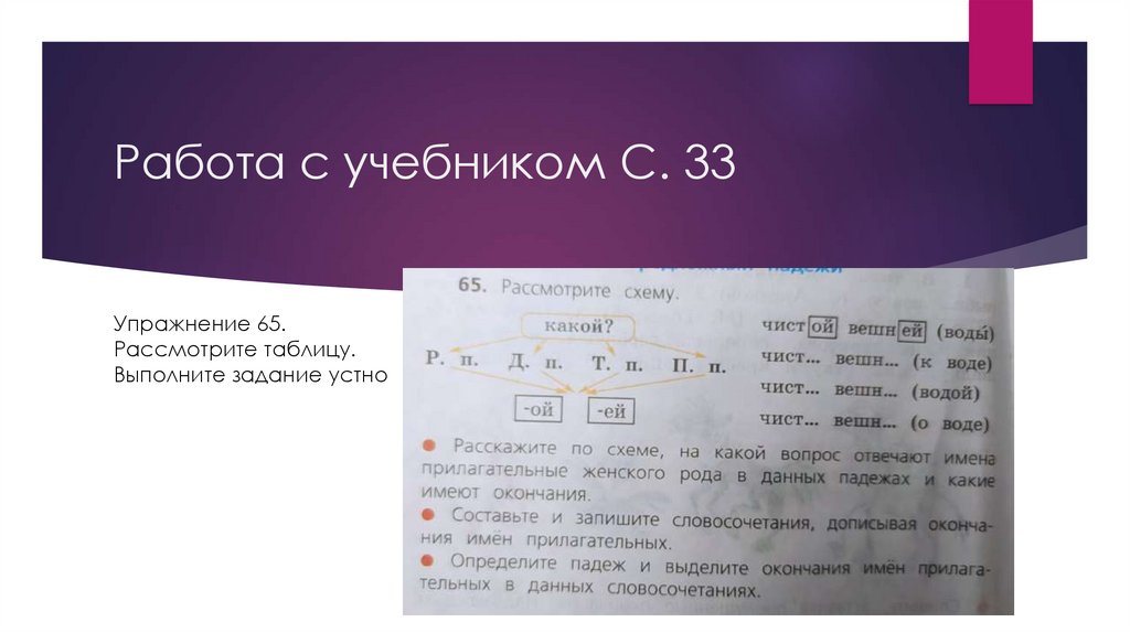 Работа с учебником С. 33Упражнение 65.