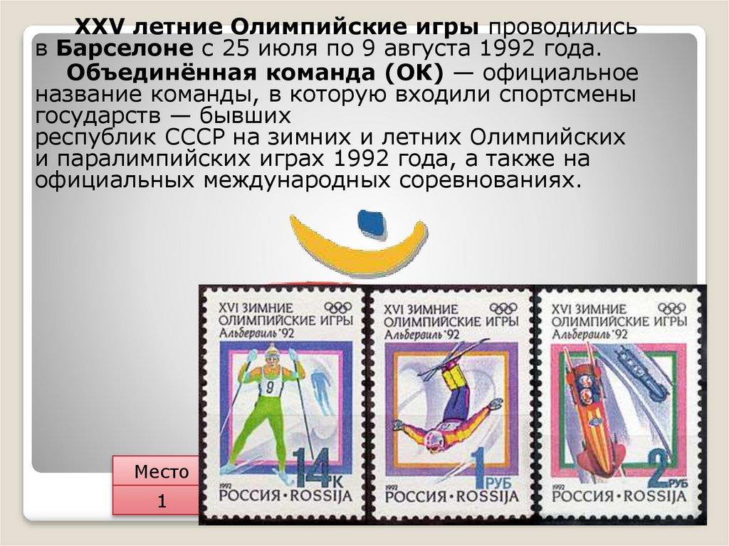 XXV летние Олимпийские игры проводилисьв Барселоне с 25 июля по 9 августа 1992 года.