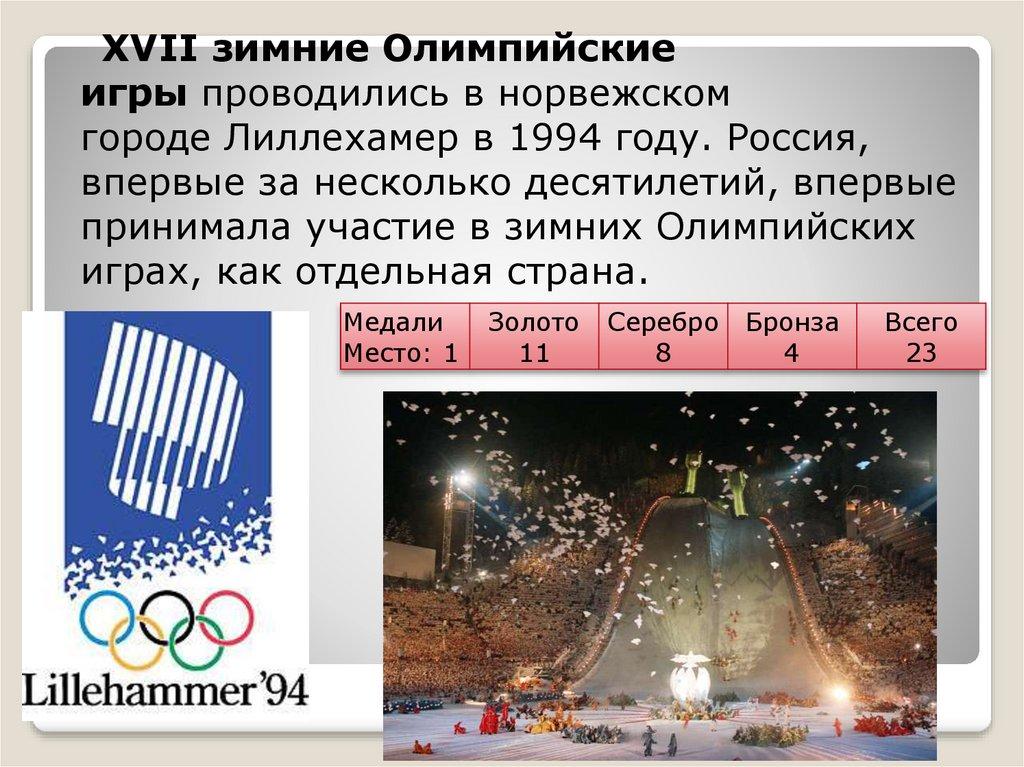 XVII зимние Олимпийскиеигры проводились в норвежском