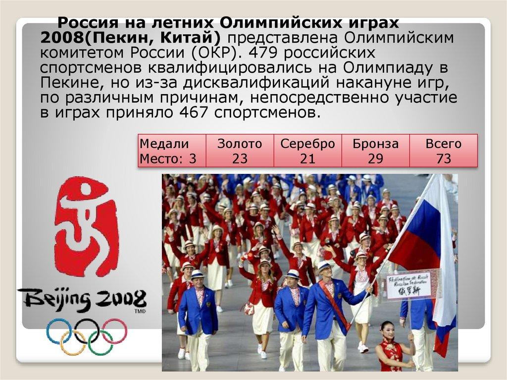 Россия на летних Олимпийских играх2008(Пекин, Китай) представлена Олимпийским