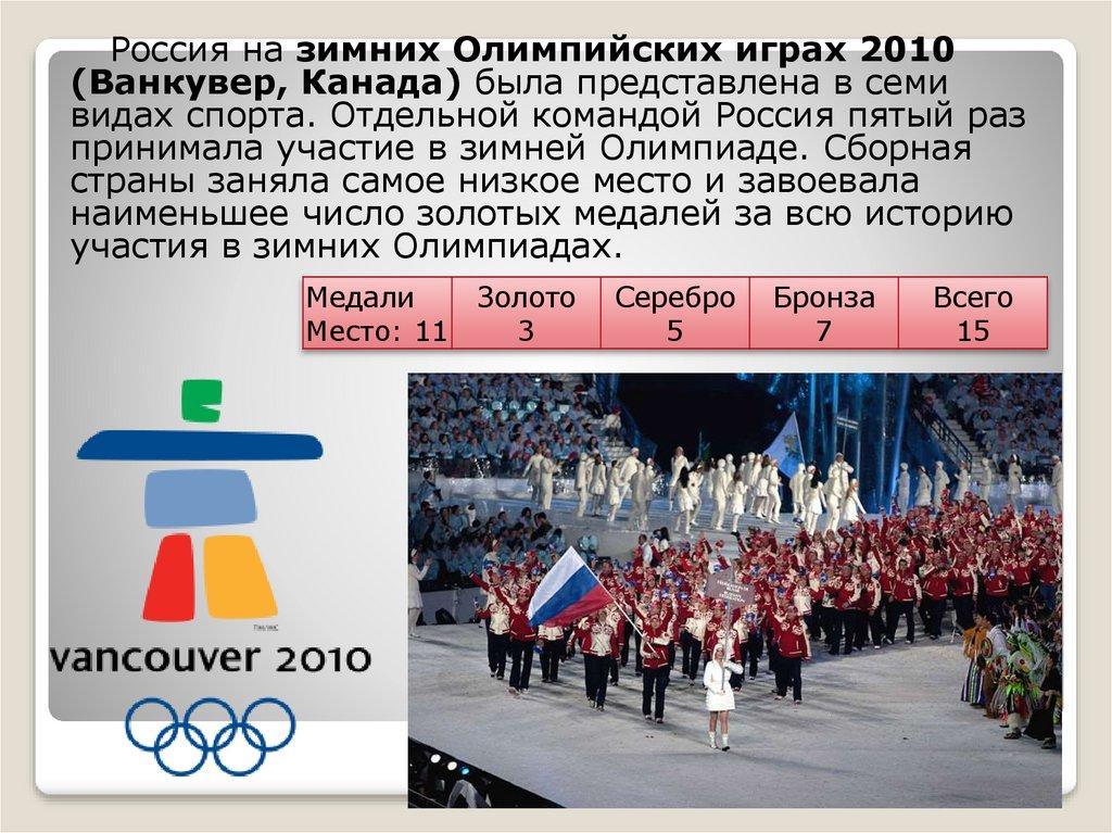 Россия на зимних Олимпийских играх 2010(Ванкувер, Канада) была представлена в семи