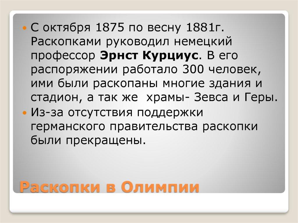 С октября 1875 по весну 1881г.Раскопками руководил немецкий