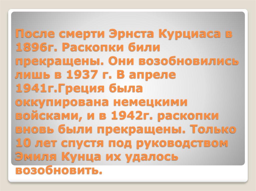 После смерти Эрнста Курциаса в1896г. Раскопки били