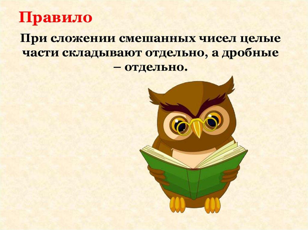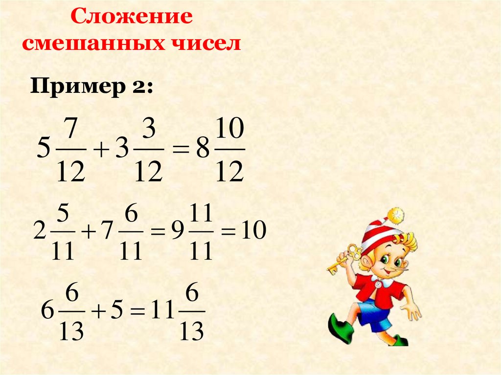 ПравилоПри сложении смешанных чисел целые