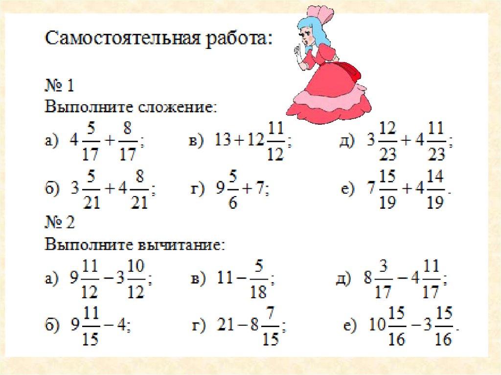 Сложение и вычитание смешанных чисел. 5 класс