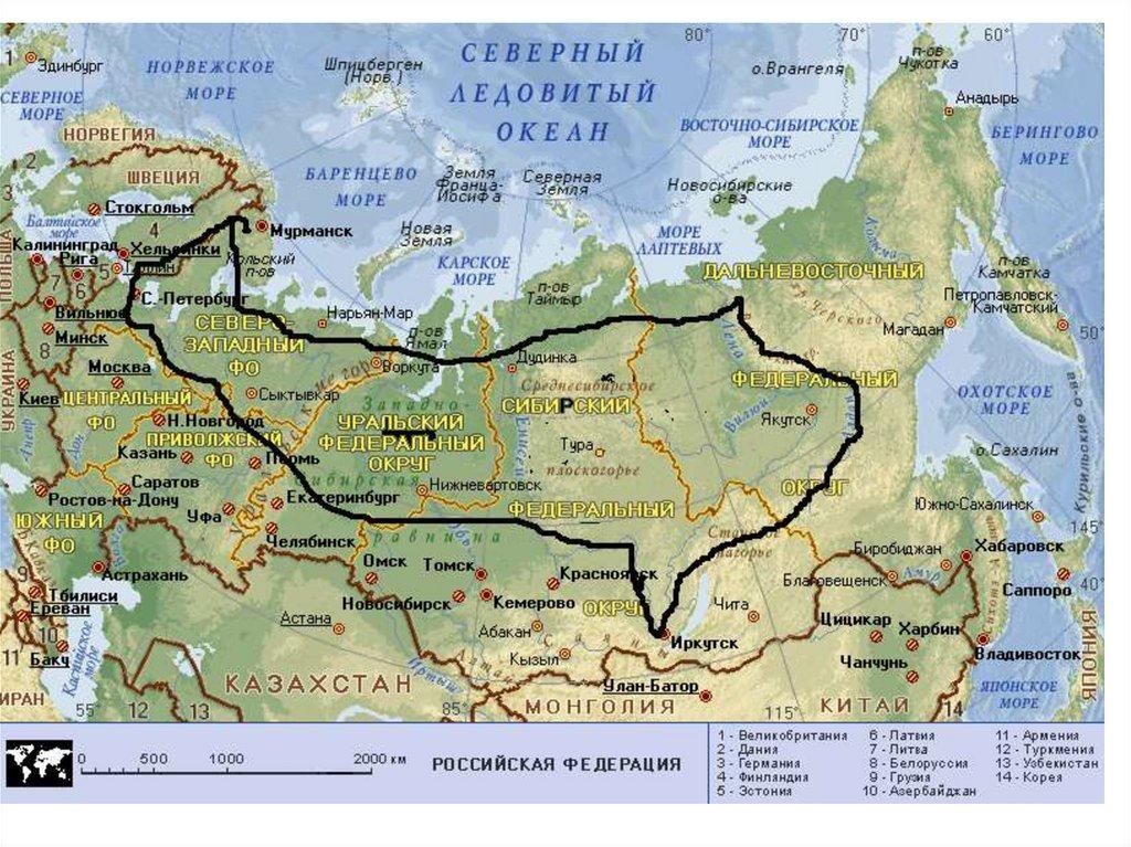 6. Из-за огромных размеров на территории нашей страны наблюдается смена (с севера на юг) почти всех природных зон существующих на