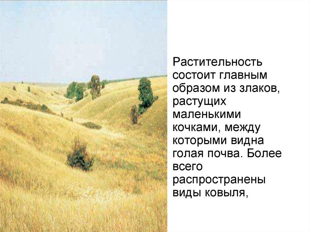 - Растительность: полыннозлаковая