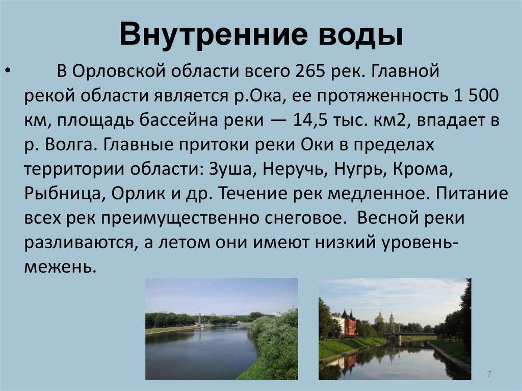Внутренние водыВ Орловской области всего 265 рек. Главной