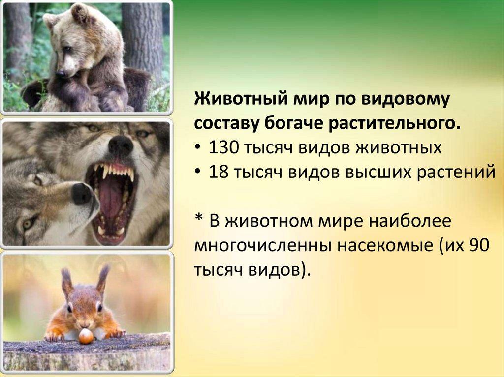 Животный мир по видовомусоставу богаче растительного.