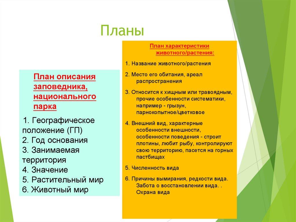 ПланыПлан характеристики