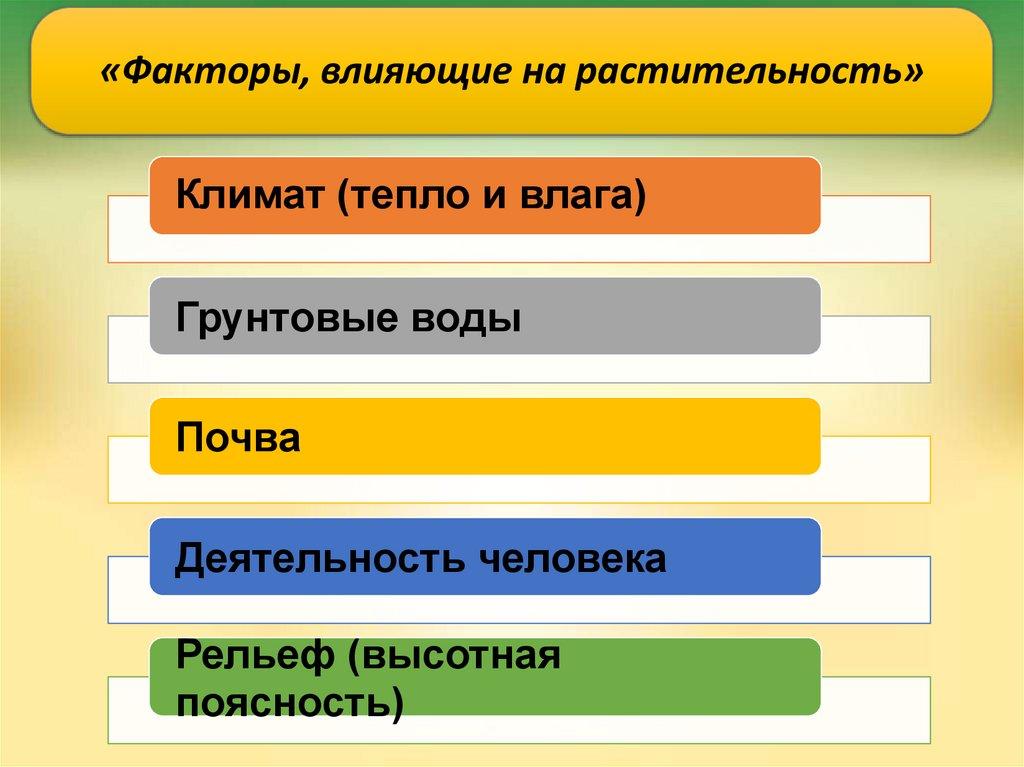 «Факторы, влияющие на растительность»Климат (тепло и влага)