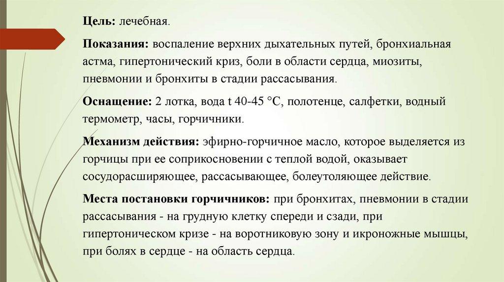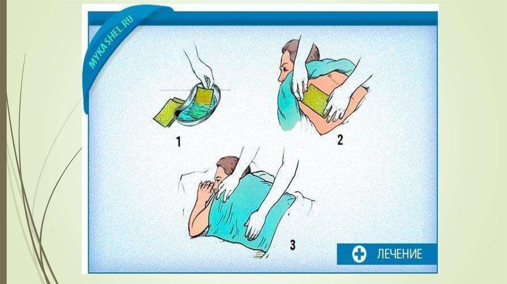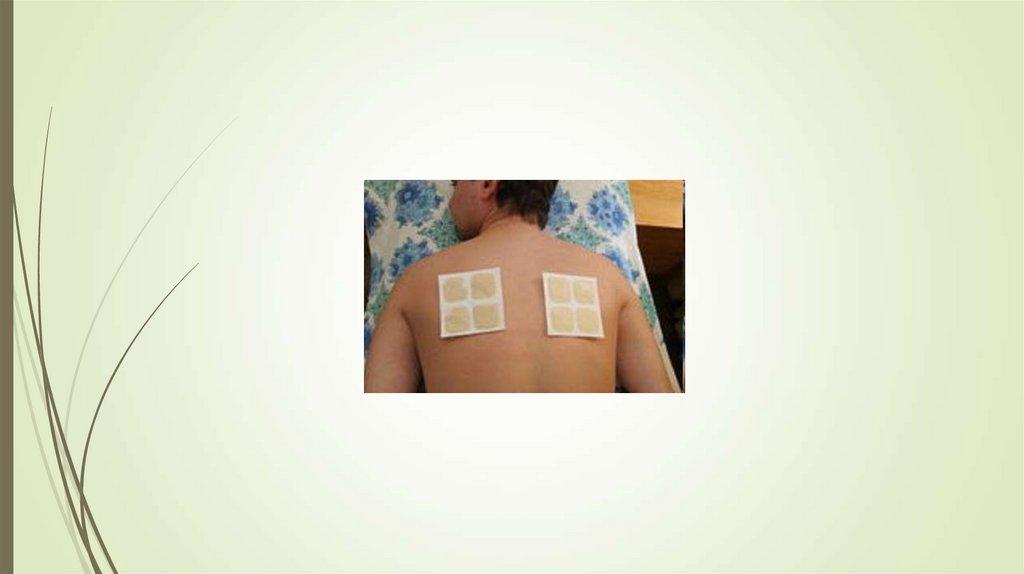 Места постановки горчичников: при бронхитах, пневмонии в стадии