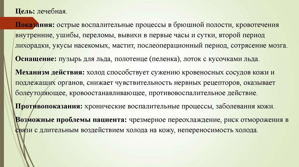 Возможные проблемы пациента: ожог кожи, нарушение комфортного