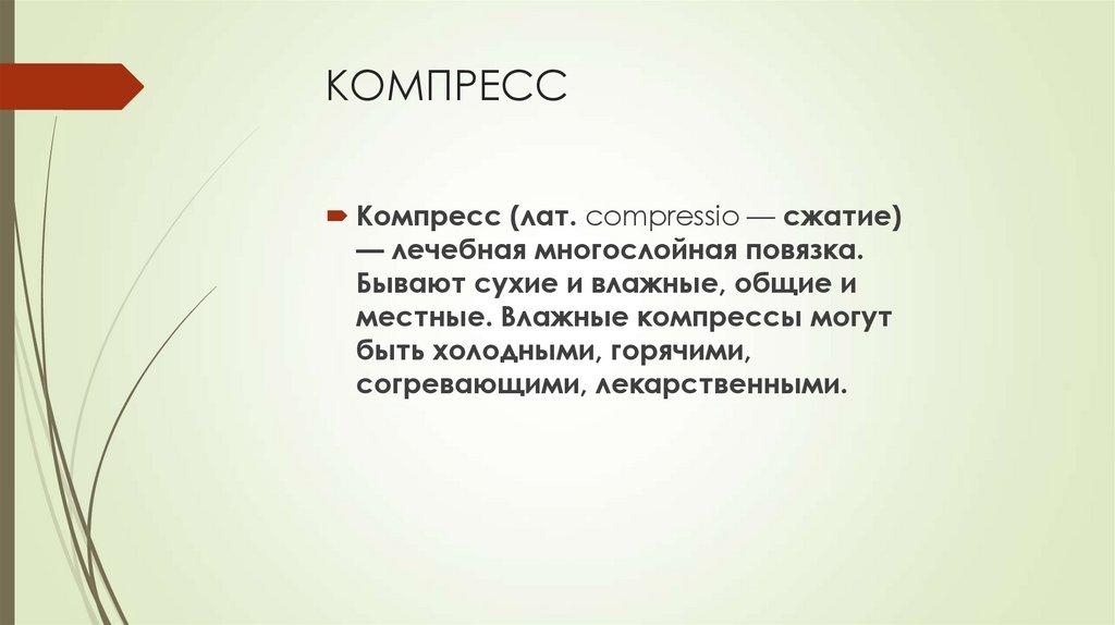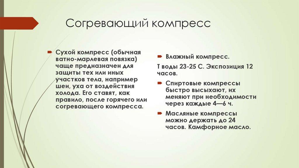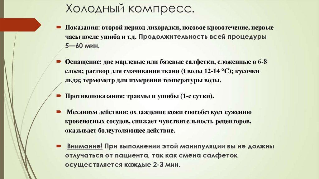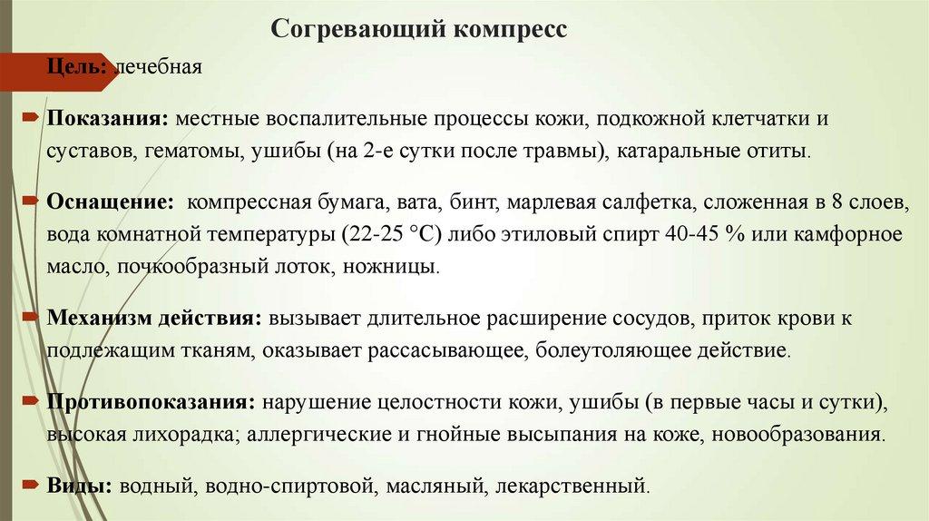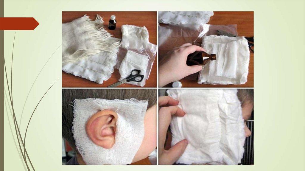 Оснащение: компрессная бумага, вата, бинт, марлевая салфетка, сложенная в 8 слоев,