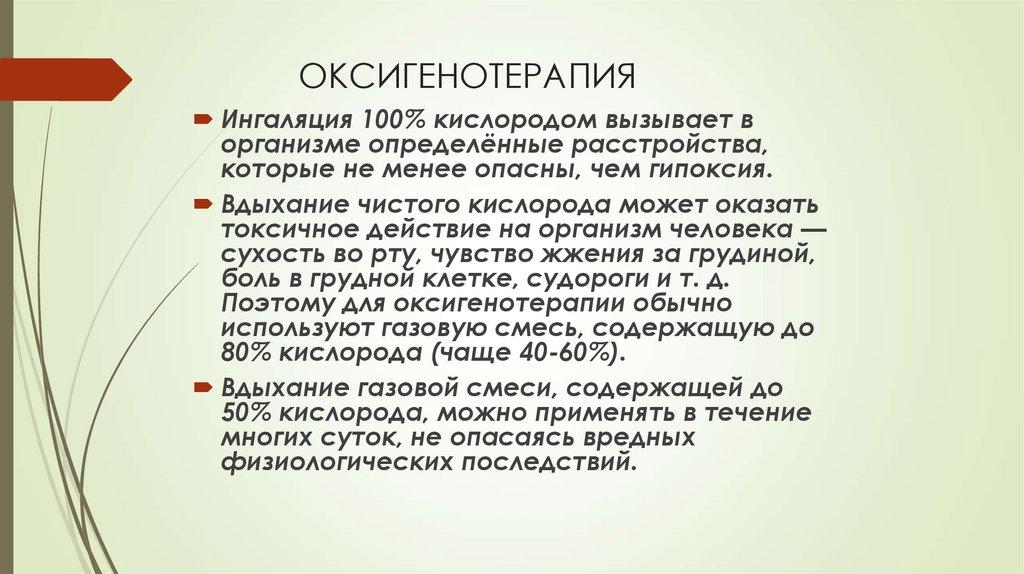 Ингаляция 100% кислородом вызывает ворганизме определённые расстройства,