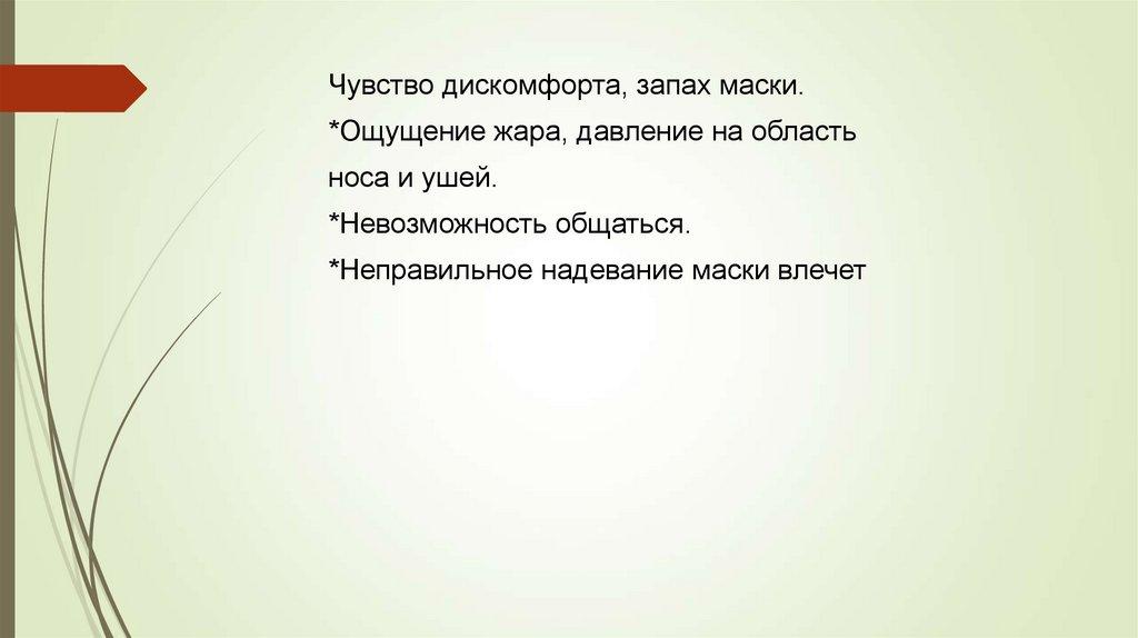 Чувство дискомфорта, запах маски.*Ощущение жара, давление на область
