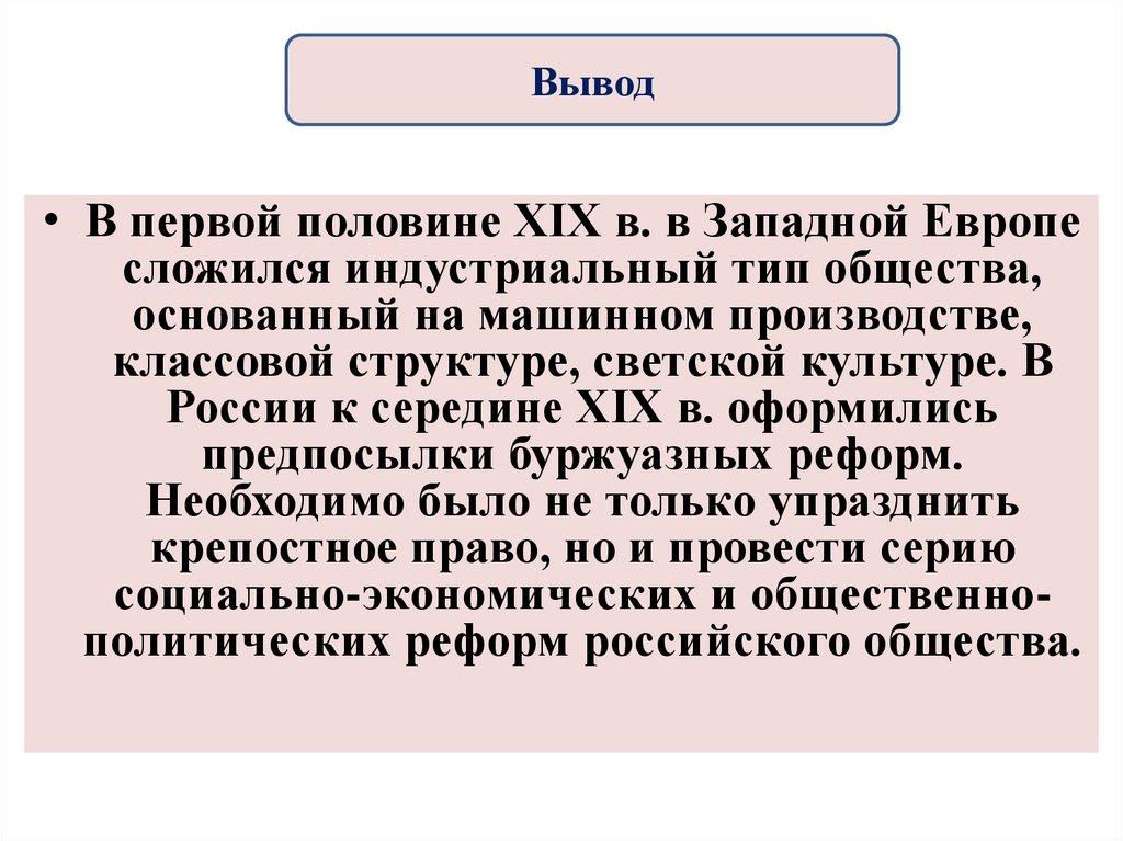 Вывод• В первой половине XIX в. в Западной Европе