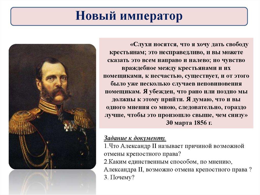 1. Новый император2. Причины отмены крепостного права