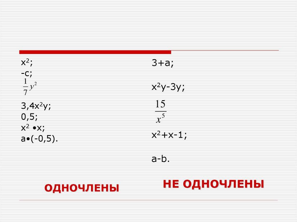 х2; 3+а; -с; у ; x2y-3y; x 5 ;