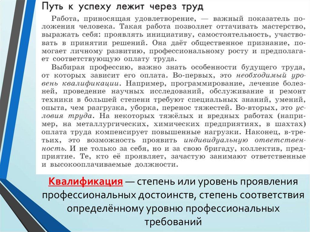 Квалификация — степень или уровень проявленияпрофессиональных достоинств, степень соответствия