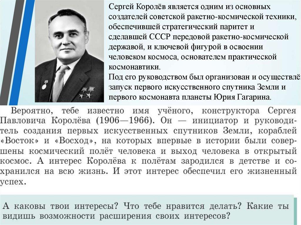Сергей Королёв является одним из основныхсоздателей советской ракетно-космической техники,