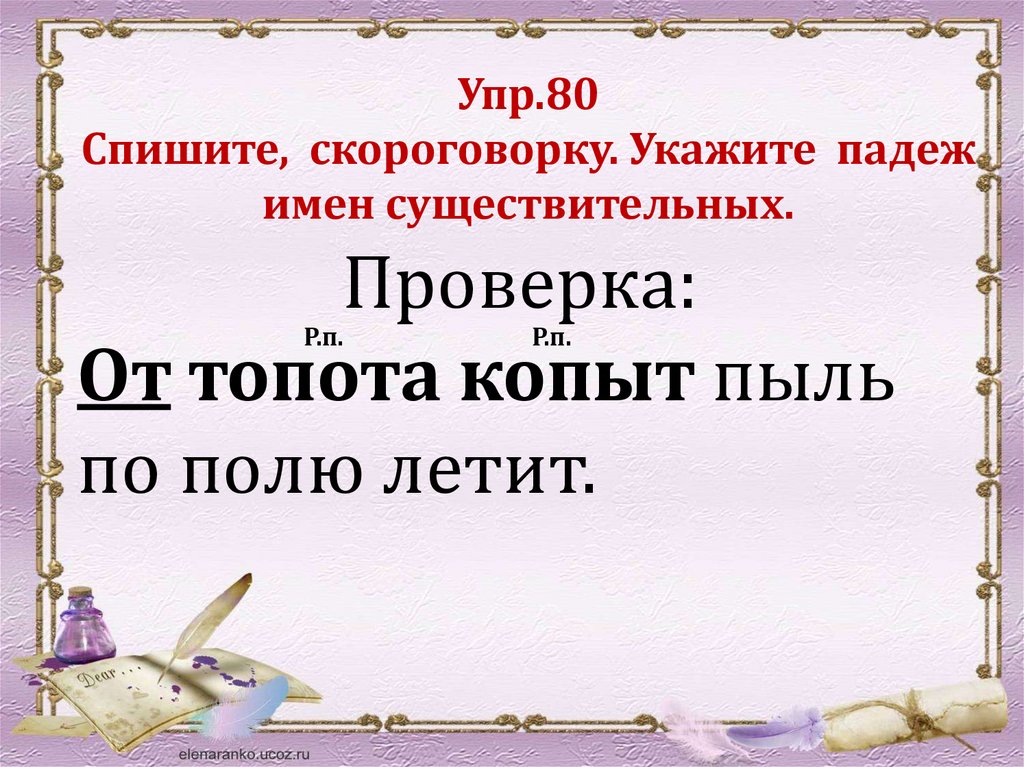 Упр.80Спишите, скороговорку. Укажите падеж
