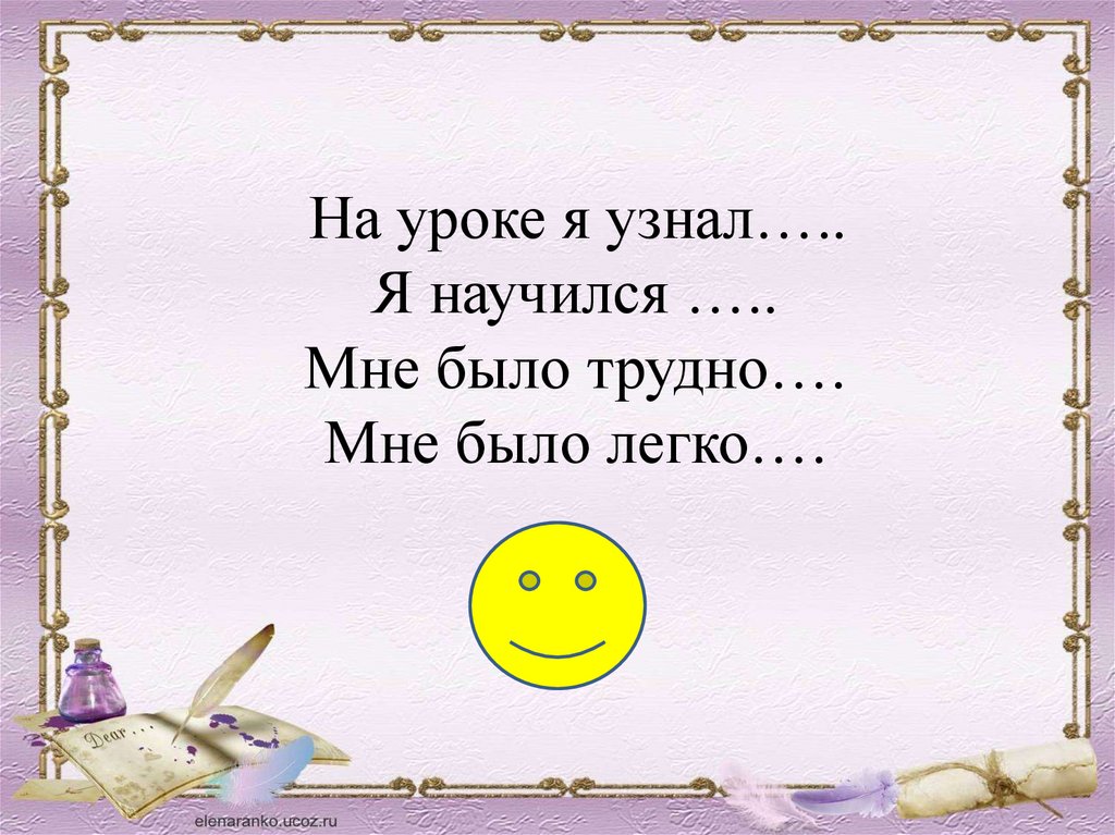 На уроке я узнал…..Я научился …..