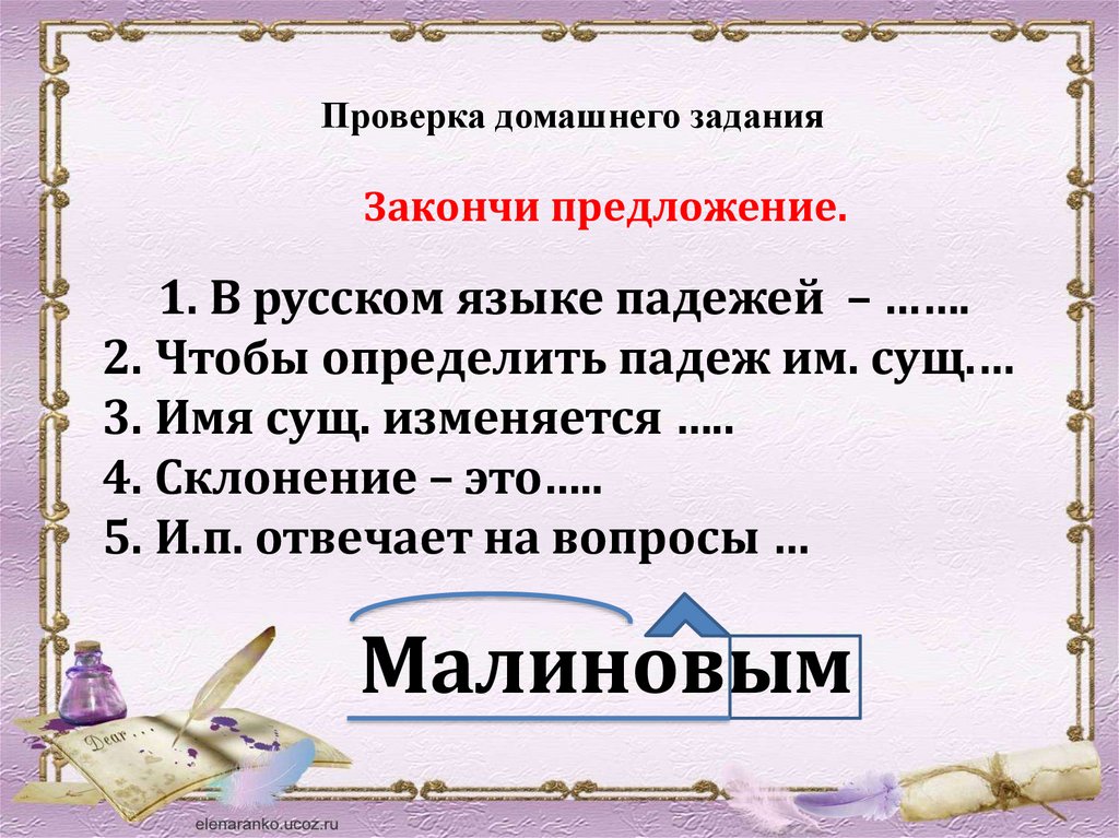 Проверка домашнего заданияЗакончи предложение.